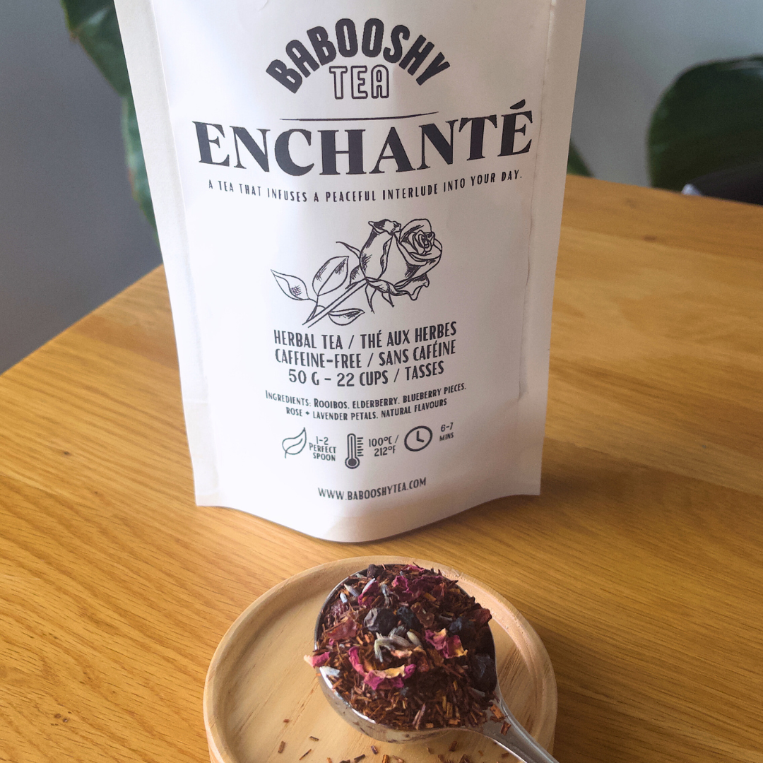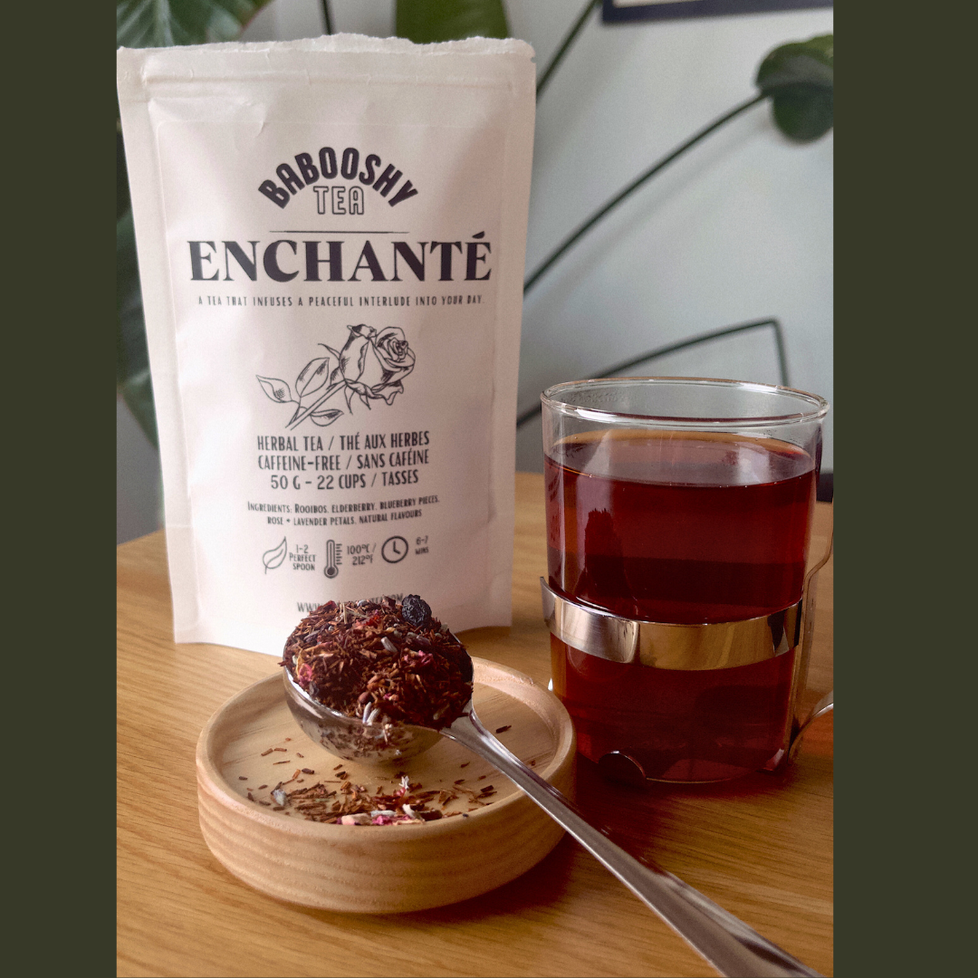 Enchante is your perfect pick for a mood-boosting, caffeine-free escape. This charming blend mixes smooth Rooibos with immune-boosting elderberry and sweet blueberry, enhanced by the floral elegance of rose and lavender. Savour Enchante's rich flavours and soothing aroma—where every sip is a delightful experience without the buzz. Choose Enchante for a serene and enchanting tea moment!