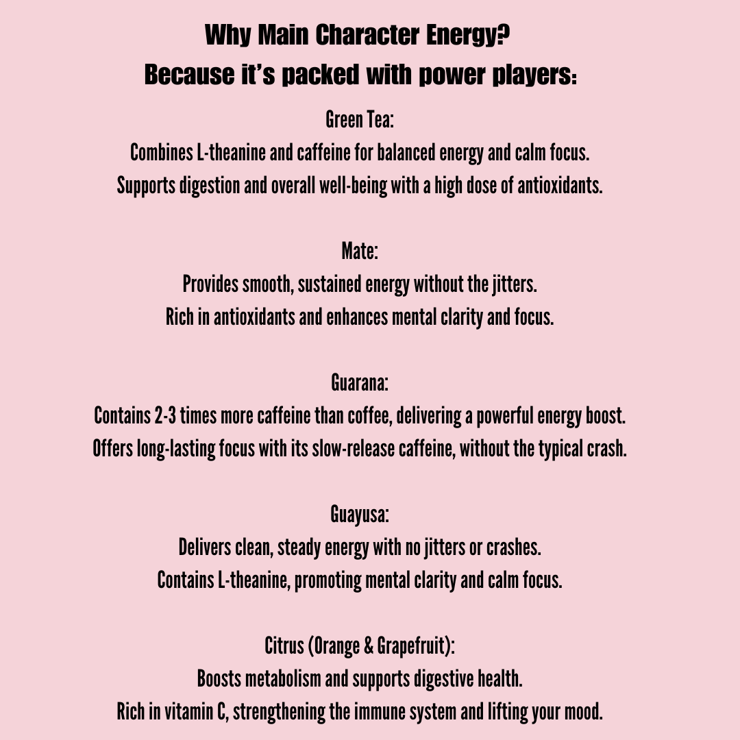 Sip on Main Character Energy and step into your starring role. Each cup fuels your day with confidence, keeping you energized, focused, and ready to shine!