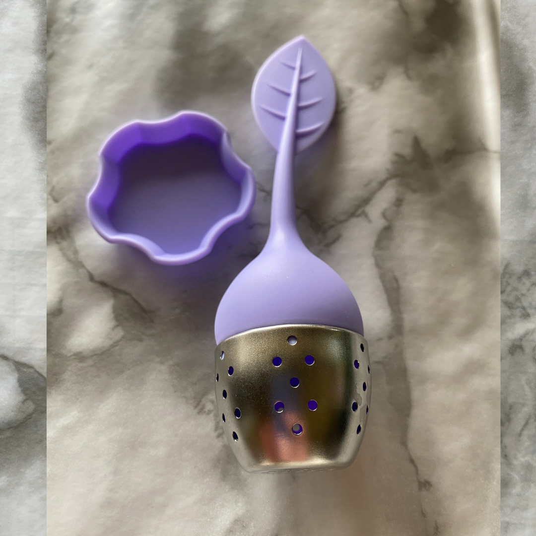 This silicone and stainless steel tea strainer is perfect for brewing up your favourite loose leaf teas. The soft silicone leaf handle makes it easy to grip and the strainer is easy to open and fill -- making it easy to dip in and out of your cup of hot water. Comes with a tea mat to put your infuser on after you are done.